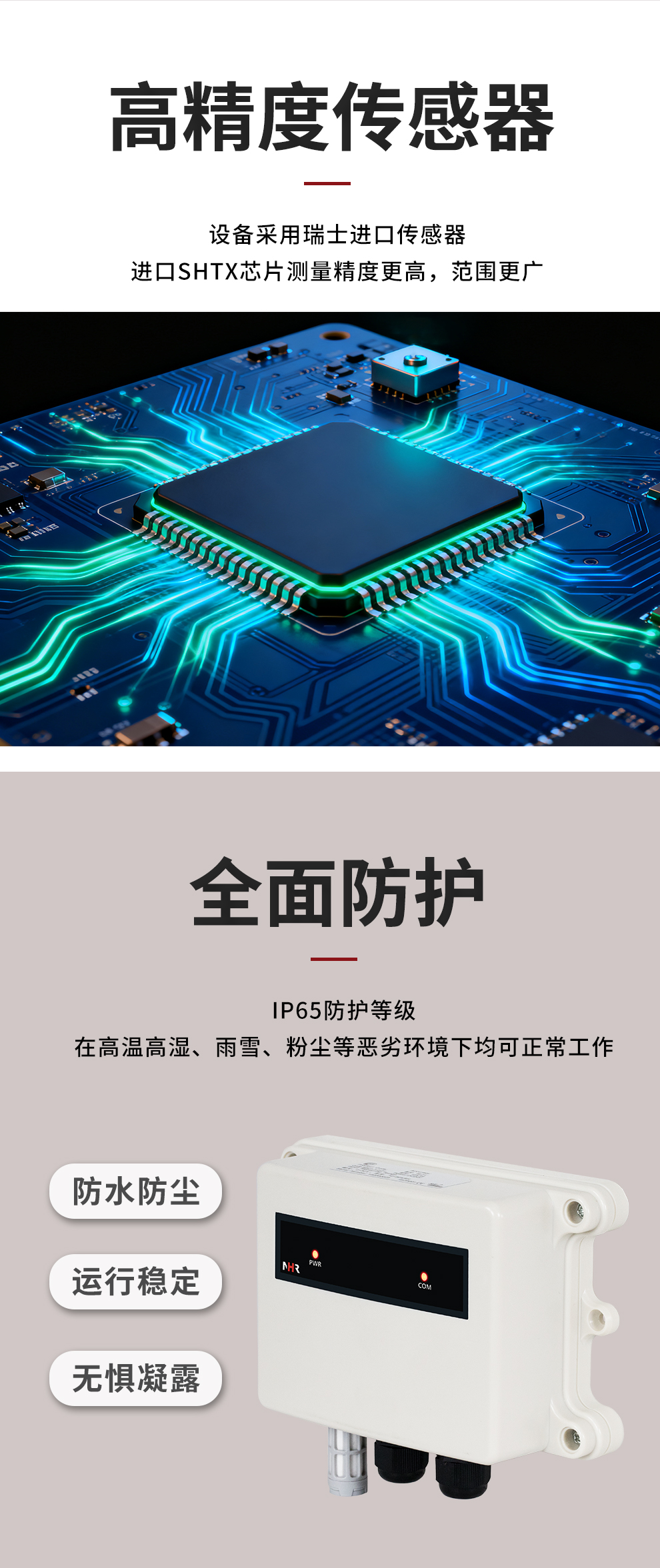 虹潤公司是專業(yè)生產(chǎn)環(huán)境監(jiān)測儀表的國家專精特新“小巨人”企業(yè)。生產(chǎn)的一體式溫濕度變送器,具有溫度、濕度、露點(diǎn)高精準(zhǔn)的測量與變送,報警繼電器輸出,RS485/RS232通訊,IP65防護(hù)等級等特點(diǎn)。產(chǎn)品獲得一種手持式低功耗溫濕度檢測儀、大屏幕溫濕度記錄儀等2項(xiàng)國家發(fā)明專利,主持起草物聯(lián)網(wǎng)智能溫度儀表通用技術(shù)條件、冷鏈溫度記錄儀等2項(xiàng)國家標(biāo)準(zhǔn),以及通信系統(tǒng)多通道數(shù)據(jù)采集控制終端規(guī)范軍用標(biāo)準(zhǔn),以及現(xiàn)場設(shè)備集成等5項(xiàng)智能制造國家標(biāo)準(zhǔn),參與國際5G標(biāo)準(zhǔn)制定,取得溫濕度儀表等3項(xiàng)相關(guān)軟件著作權(quán)。產(chǎn)品廣泛應(yīng)用于工業(yè)現(xiàn)場、農(nóng)業(yè)大棚、倉儲物流、地下管廊、養(yǎng)殖孵化、配電機(jī)房等諸多領(lǐng)域。