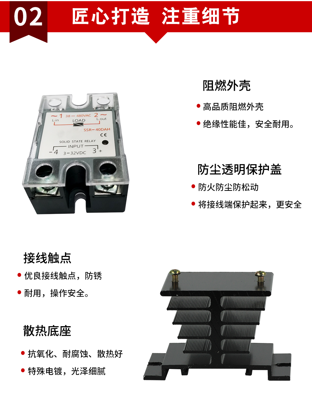 NHR-SSR固態(tài)繼電器尺寸小巧,內(nèi)置壓敏電阻及阻容吸收回路,具有吸收電網(wǎng)尖峰電壓抗干擾能力。可通過動作指示燈來檢查工作狀態(tài),寬電壓輸出,可達到AC38-480V,低觸發(fā)電流小干8mA。