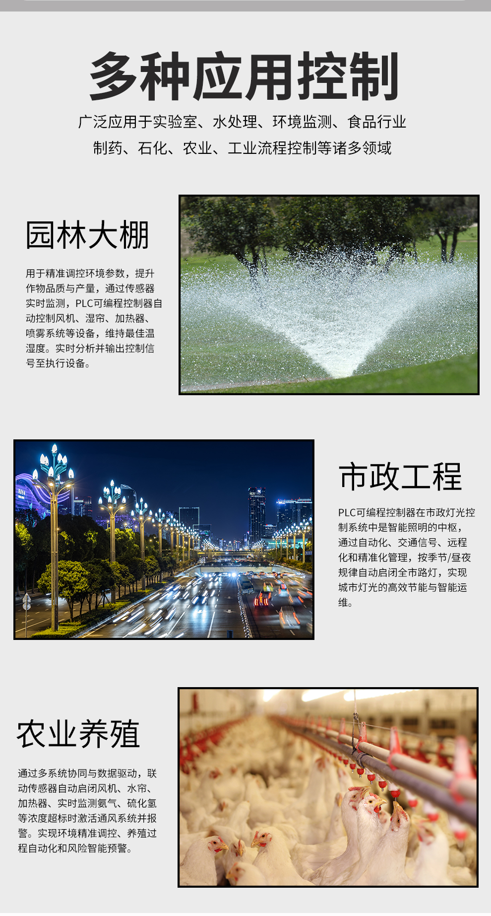 虹潤公司是專業(yè)生產(chǎn)PLC控制器的國家專精特新“小巨人”企業(yè)。生產(chǎn)的簡易PLC控制器,具有全隔離設(shè)計,中文編程,專業(yè)邏輯控制與時間,梯形圖編程方式,遠(yuǎn)程RS485通訊監(jiān)測等特點(diǎn)。產(chǎn)品獲得智能化控制器、多通道可編程繼電器等2項國家發(fā)明專利;主持起草流程工業(yè)中電氣/儀表和控制系統(tǒng)的試車國家標(biāo)準(zhǔn),通信系統(tǒng)多通道數(shù)據(jù)采集控制終端規(guī)范軍用標(biāo)準(zhǔn),以及現(xiàn)場設(shè)備集成等5項智能制造國家標(biāo)準(zhǔn),參與國際5G標(biāo)準(zhǔn)制定,取得可編程繼電器等2項相關(guān)軟件著作權(quán)。產(chǎn)品廣泛應(yīng)用于工業(yè)自動化設(shè)備、電氣自動化系統(tǒng)、農(nóng)業(yè)灌溉、包裝機(jī)械、印刷機(jī)械、樓宇自控等諸多領(lǐng)域。