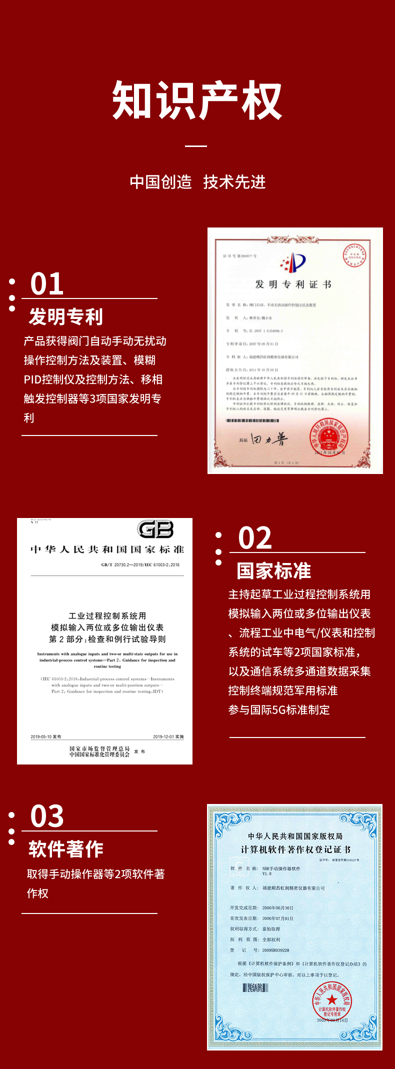 虹潤(rùn)公司是專業(yè)生產(chǎn)智能手操器的國(guó)家專精特新“小巨人”企業(yè),生產(chǎn)的手動(dòng)操作器,具有手自動(dòng)無(wú)擾切換,直接調(diào)節(jié)閥門,多種輸出類型,外接強(qiáng)制手動(dòng)功能,高抗干擾等特點(diǎn)。產(chǎn)品獲得閥門自動(dòng)手動(dòng)無(wú)擾動(dòng)操作控制方法及裝置、模糊PID控制儀及控制方法、移相觸發(fā)控制器等3項(xiàng)國(guó)家標(biāo)準(zhǔn),主持起草工業(yè)過(guò)程控制系統(tǒng)用模擬輸入兩位或多位輸出儀表、流程工業(yè)中電氣/儀表和控制系統(tǒng)的試車等2項(xiàng)國(guó)家標(biāo)準(zhǔn),以及通信系統(tǒng)多通道數(shù)據(jù)采集控制終端規(guī)范軍用標(biāo)準(zhǔn),參與國(guó)際5G標(biāo)準(zhǔn)制定,取得手動(dòng)操作器等3項(xiàng)相關(guān)軟件著作權(quán)。產(chǎn)品廣泛應(yīng)用于電力、石化、冶金、化工、造紙、食品、輕工、制藥、熱處理、水處理、機(jī)械配套等各種工業(yè)現(xiàn)場(chǎng)。