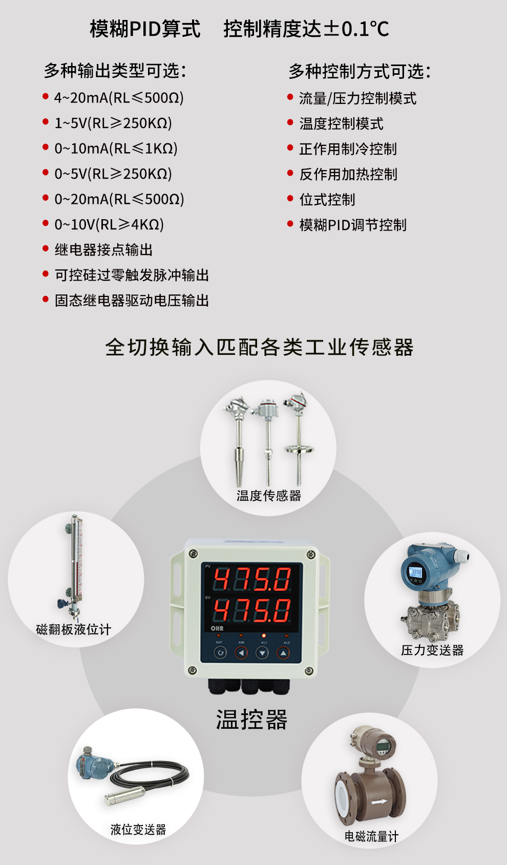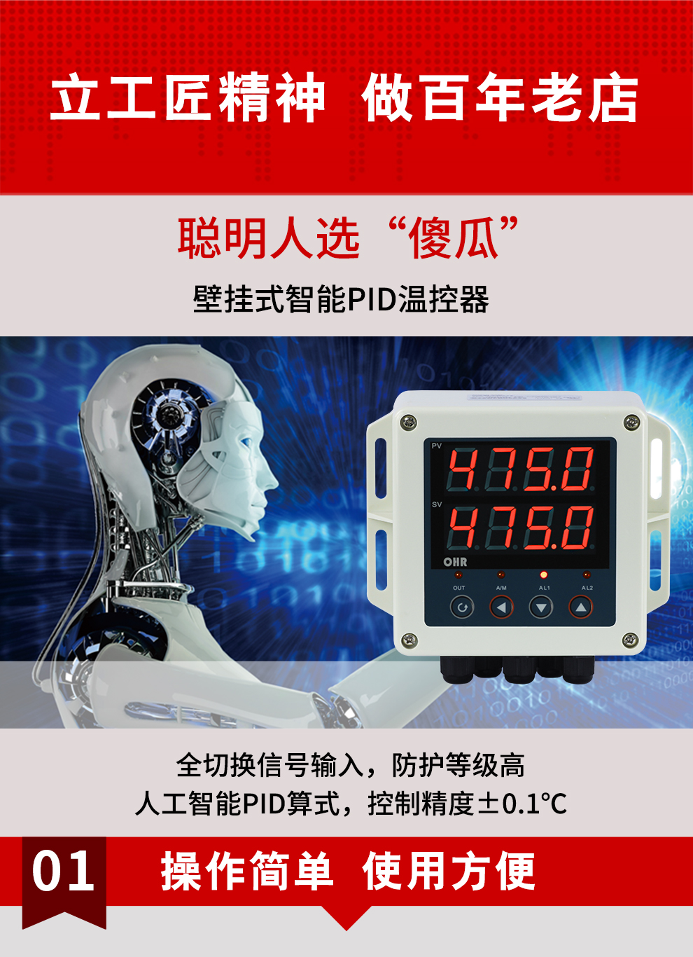 虹潤公司是專業(yè)生產(chǎn)溫控器的國家專精特新“小巨人”企業(yè)。生產(chǎn)的壁掛式PID溫控器,具有全切換信號輸入,真正人工智能算式,控制精度達(dá)士0.1°C,防護等級高,RS485通訊輸出DN等特點。產(chǎn)品獲得模糊PID控制儀及控制方法、人工智能調(diào)節(jié)器、智能化控制器、移相觸發(fā)控制器、閥門自動手動無擾動操作控制方法及裝置等5項國家發(fā)明專利,主持起草主持起草工業(yè)過程控制系統(tǒng)用模擬輸入兩位或多位輸出儀表、物聯(lián)網(wǎng)智能溫度儀表通用技術(shù)條件、工業(yè)過程測量和控制系統(tǒng)用智能調(diào)節(jié)器等3項國家標(biāo)準(zhǔn),以及通信系統(tǒng)多通道數(shù)據(jù)采集控制終端規(guī)范軍用標(biāo)準(zhǔn)。參與國際5G標(biāo)準(zhǔn)制定,取得傻瓜式PID調(diào)節(jié)儀等3項相關(guān)軟件著作權(quán)。產(chǎn)品廣泛應(yīng)用于電力、石化,冶金、制藥、食品等幾乎所有工業(yè)現(xiàn)場,實現(xiàn)精準(zhǔn)控溫,保障生產(chǎn)安全與質(zhì)量。
