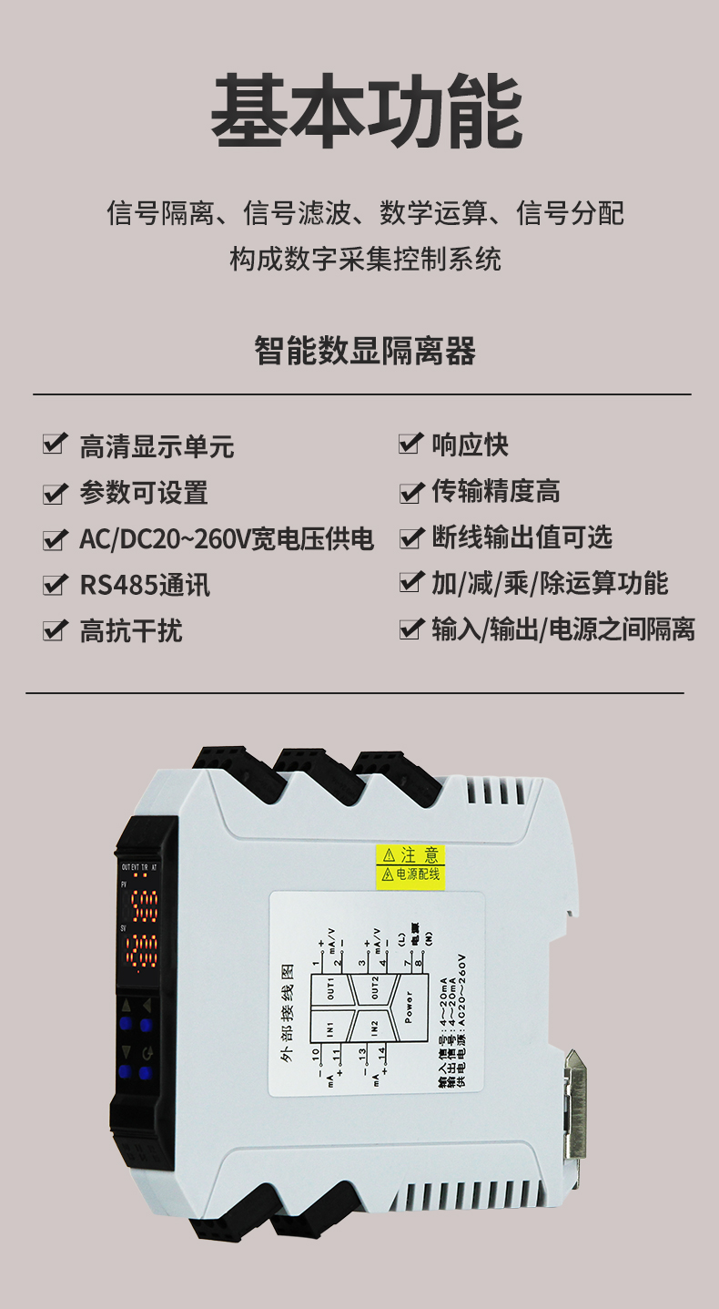 虹潤(rùn)公司是專業(yè)生產(chǎn)隔離器的國家專精特新“小巨人”企業(yè)。生產(chǎn)的導(dǎo)軌式智能隔離器 ,具有高清顯示單元,參數(shù)可設(shè)置,寬電源供電,響應(yīng)快,帶RS485通訊等特點(diǎn)。產(chǎn)品獲得信號(hào)隔離器、一種二端子模塊、無源信號(hào)隔離器等3項(xiàng)國家發(fā)明專利,主持起草現(xiàn)場(chǎng)設(shè)備工具(FDT)接口規(guī)范、工業(yè)過程測(cè)量和控制系統(tǒng)用隔離式安全柵、工業(yè)過程測(cè)量和控制系統(tǒng)用配電器等3項(xiàng)國家標(biāo)準(zhǔn),以及通信系統(tǒng)多通道數(shù)據(jù)采集控制終端規(guī)范軍用標(biāo)準(zhǔn),參與國際5G標(biāo)準(zhǔn)制定,取得智能隔離器等2項(xiàng)相關(guān)軟件著作權(quán)。產(chǎn)品廣泛應(yīng)用于電力、石化,冶金、制藥、水處理、機(jī)械配套等各種工業(yè)現(xiàn)場(chǎng)。