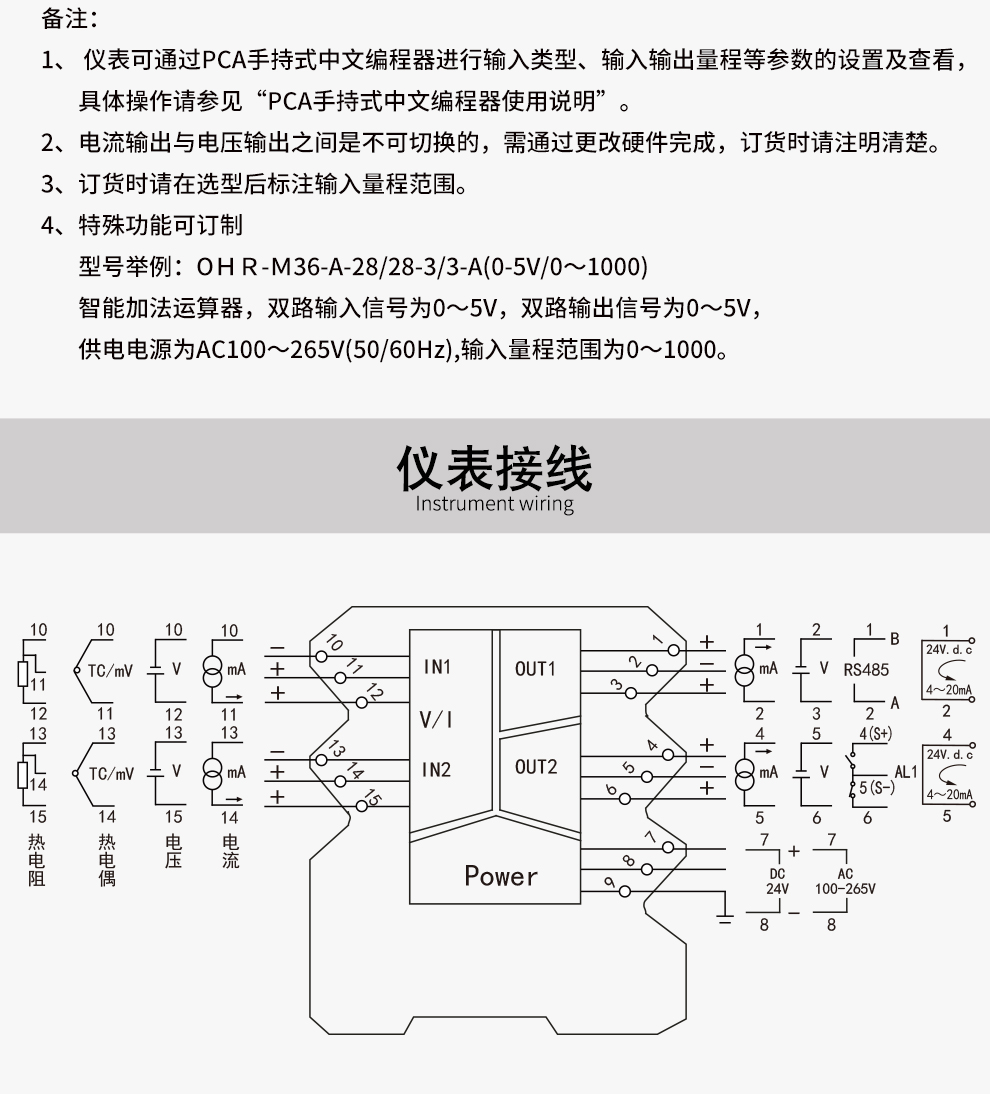 OHR-M36系列智能數學運算器將輸入信號進行數學運算(加減,乘除)后,轉換為隔離的模擬量信號輸出,經過隔離傳送,轉換成所需的信號給其它儀表。
