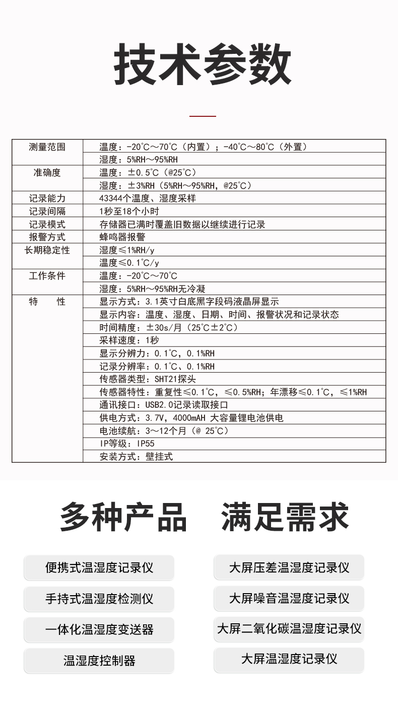 虹潤公司是專業(yè)生產(chǎn)環(huán)境監(jiān)測儀表的國家專精特新“小巨人”企業(yè)。生產(chǎn)的便攜式溫濕度記錄儀,具有溫濕度記錄與轉(zhuǎn)存,手機充電電池,磁吸或壁掛安裝,故障報警提示,配上位機軟件等特點。產(chǎn)品獲得一種手持式低功耗溫濕度檢測儀、無紙記錄儀等2項國家發(fā)明專利,主持起草物聯(lián)網(wǎng)智能溫度儀表通用技術(shù)條件、冷鏈溫度記錄儀等2項國家標(biāo)準(zhǔn),通信系統(tǒng)多通道數(shù)據(jù)采集控制終端規(guī)范軍用標(biāo)準(zhǔn),以及現(xiàn)場設(shè)備集成等5項智能制造國家標(biāo)準(zhǔn),參與國際5G標(biāo)準(zhǔn)制定,取得便攜式溫濕度記錄儀等3項相關(guān)軟件著作權(quán)。產(chǎn)品廣泛應(yīng)用于冷鏈運輸、醫(yī)藥冷庫、藥品陰涼柜、實驗室、機房倉庫、養(yǎng)殖孵化、大棚種植等諸多領(lǐng)域。