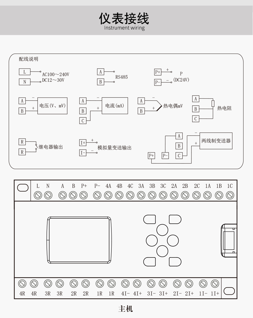 OHR-PR40系列數(shù)據(jù)控制器多重保護和隔離設 計,抗干擾能力強,可靠性高。儀表采用主副機結構設計,主機可提供4路萬能信號輸入,通道間 相互隔離;4限報警輸出、4路變送輸出,饋電輸出、RS485通訊、以太網(wǎng)通訊等功能,連接副機可將I/O容量 擴展至8路輸入和8限報警輸出、8路變送輸出。