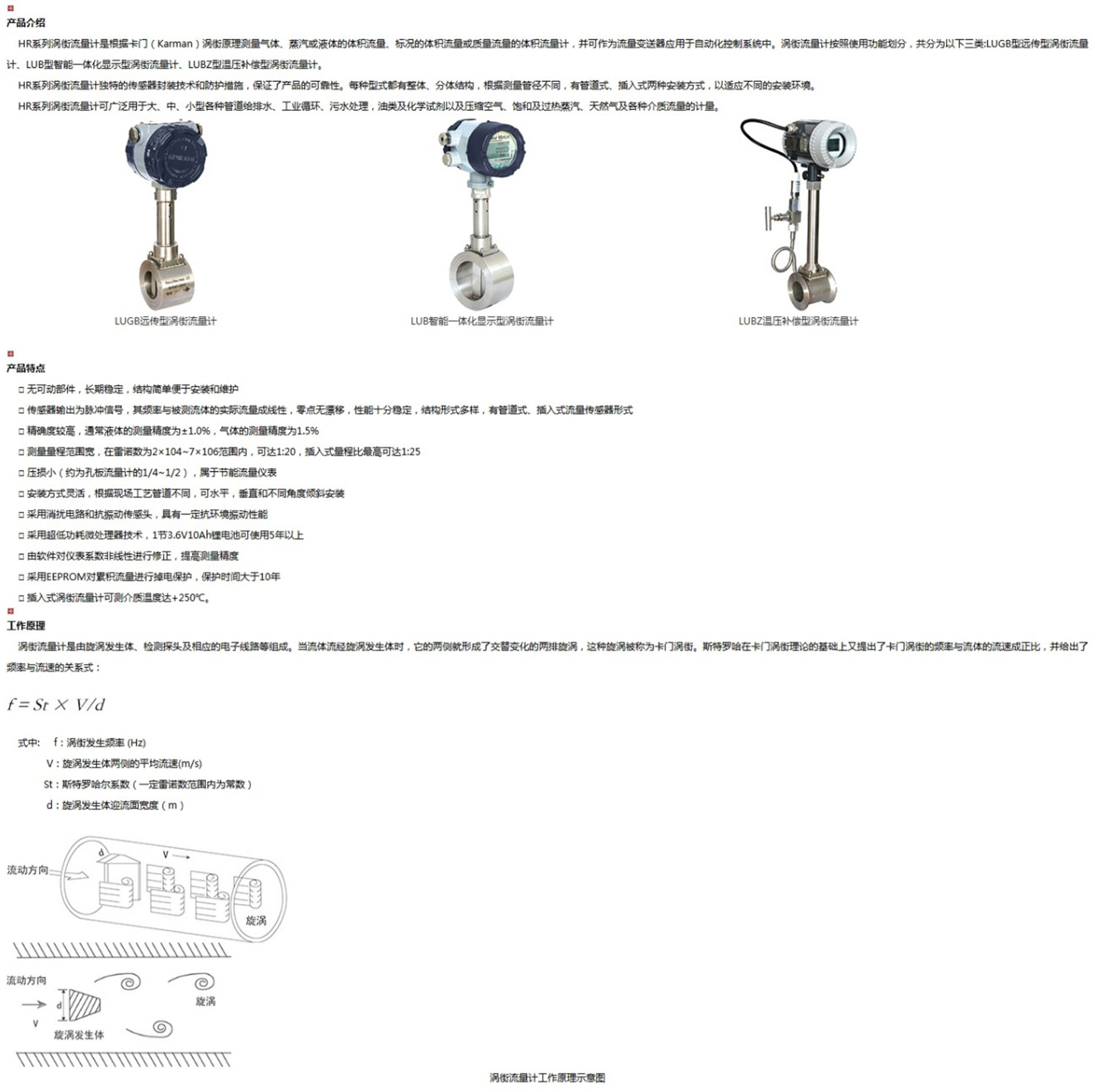 HR系列渦街流量計(jì)是根據(jù)卡門(Karman)渦街原理測(cè)量氣體、蒸汽或液體的體積流量、標(biāo)況的體積流量或質(zhì)量流量的體積流量計(jì),并可作為流量變送器應(yīng)用于自動(dòng)化控制系統(tǒng)中。廣泛用于大、中、小型各種管道給排水、工業(yè)循環(huán)、污水處理,油類及化學(xué)試劑以及壓縮空氣、飽和及過熱蒸汽、天然氣及各種介質(zhì)流量的計(jì)量。